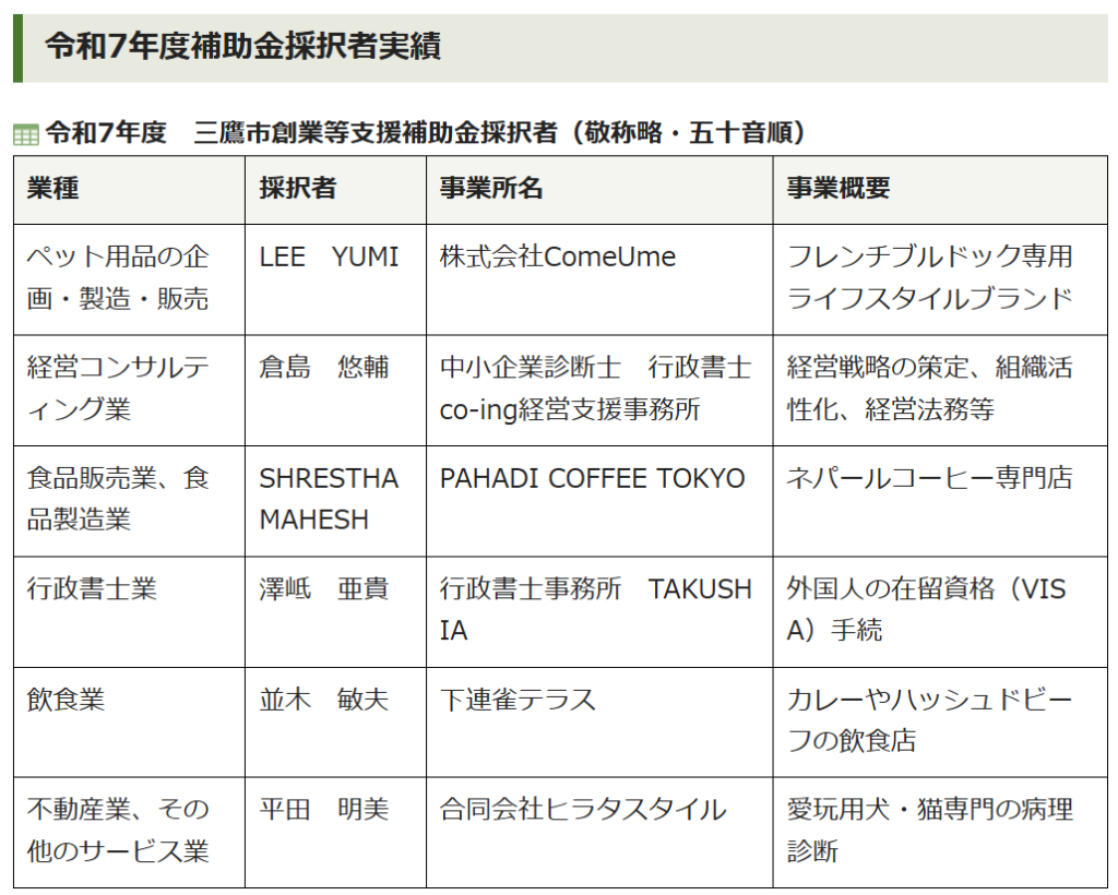 今回の「三鷹市創業等支援補助金」の採択によって、